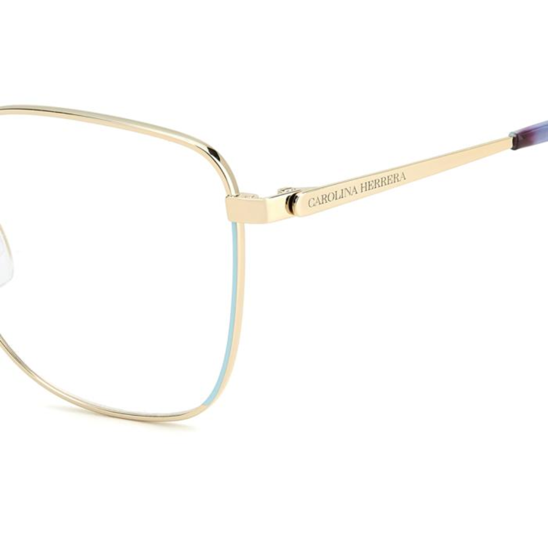Carolina Herrera's Essential eyewear collection celebrates the brand's feminine and joyful spirit. Crafted from ultra-light metal, these optical glasses elevate timeless, feminine shapes with an unexpected touch of colour around the rims and logo-engraved stainless steel temples that beautifully frame the face. The coordinating acetate tips tie the look together, finished with the iconic riveted hinge, the subtle CH monogram etched into the adjustable nose pads and the unmissable red CH monogram at the tips.